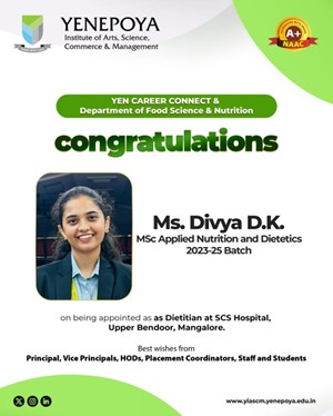 Congratulations on being appointed as Dietitian at SCS Hospital, Upper Bendoor, Mangalore.